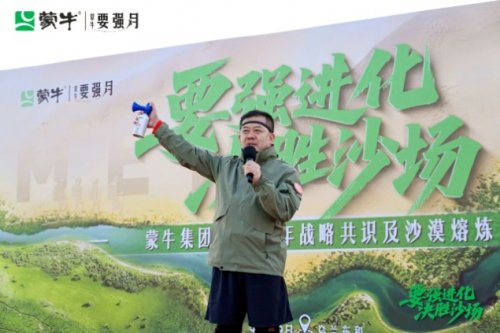 蒙牛集团组织管理层与骨干员工共275人,近日齐聚乌兰布和沙漠召开“要强进化 决胜沙场”2025战略共识会。高飞总裁在发言中强调:“要强不是喊出来的,是进化出来的”,并展开沙漠熔炼。